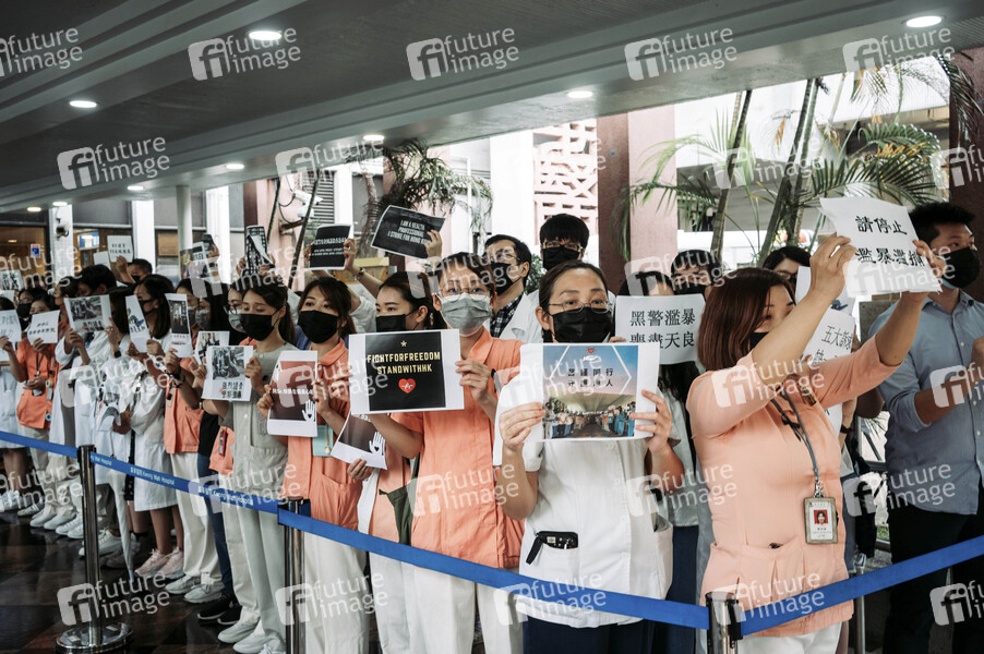 Unfangreiche Streiks und Protestaktionen in Hongkong. Hier streiken die Angestellten des Queen Elizabeth Hospital. Hongkong, 02.09.2019