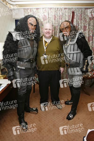 J.G. Hertzler und Robert O'Reilly mit Wayne Haines vom britischen Klingonenclub