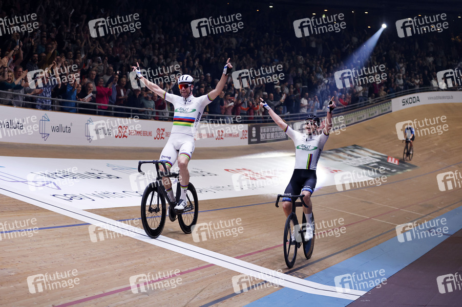 Roger Kluge (GER) und Theo Reinhardt (GER) im Finale beim Sixdays Weekend 2025 im Velodrom. Berlin, 01.02.2025
