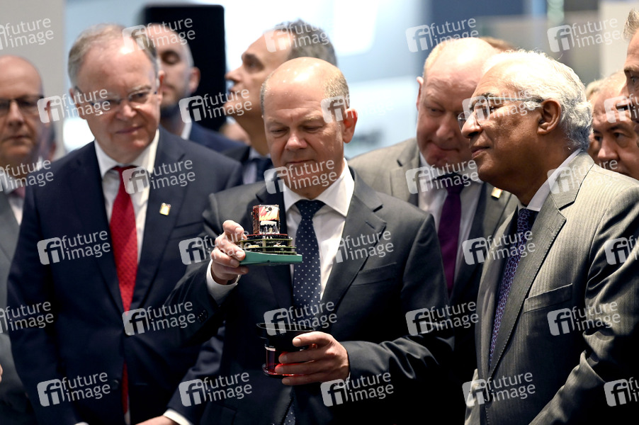 Industriemesse, Automatisierung, Industrie 4.0, IT-Sicherheit, KI, Technologie, Wirtschaft, Ausstellung, Fair, Messe, Partnerland Portugal, Eröffnung, Opening, Leitmesse, Deutsche Messe AG, Eröffnungsrundgang, Highlight Tour, Hannover Messe Industrie, Politiker, Ministerpräsident von Niedersachsen, SPD, Bundeskanzler, Premierminister von Portugal, PS, Partido Socialista, António Costa