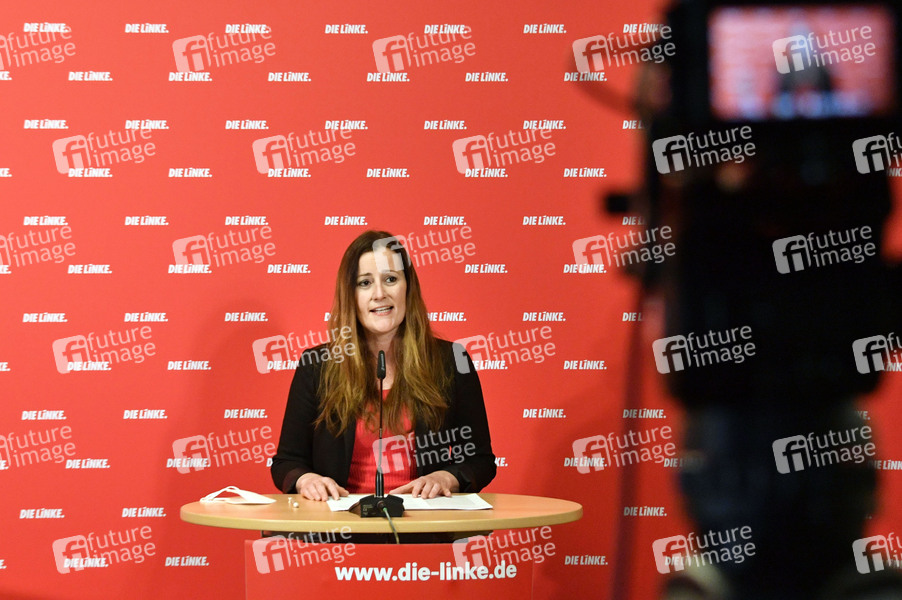 Janine Wissler bei der Pressekonferenz zur Vorstellung der neuen Vorsitzenden der Partei Die Linke im Karl-Liebknecht Haus. Berlin, 01.03.2021