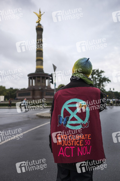 Aktivisten der Klimabewegung 'Extinction Rebellion' blockieren den Großen Stern an der Siegessäule. Berlin, 08.10.2019