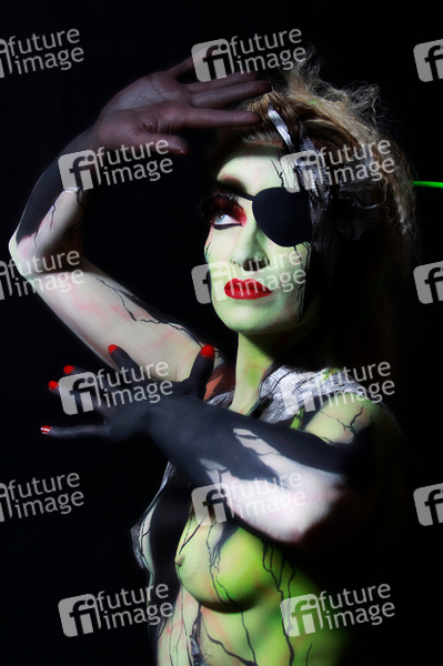 Bodypainting, Erotik, Frau, Mädchen, nackt, drinnen, weiblich, Körperkunst, Kunst, Malerei, Augenklappe, erotic, woman, girl, nude, indoor, female, body art, body painting, eyepatch