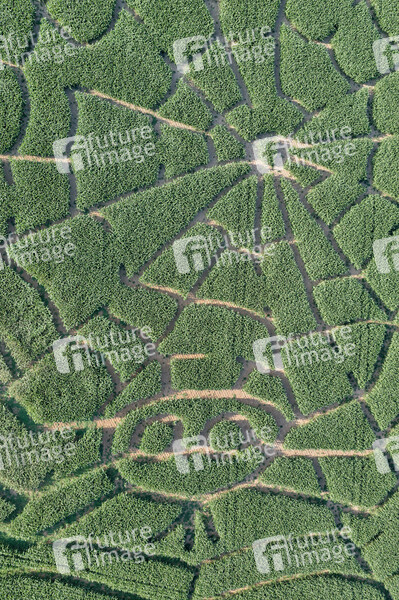 Maisfeld, Feld, Landwirtschaft, Labyrint, Freizeit, Familiespaß, Ausflugziel, temporärer Irrgarten, Freizeiteinrichtung, Sommervergnügen, Luftaufnahme, Luftbild, Drohne, Drohnenaufnahme