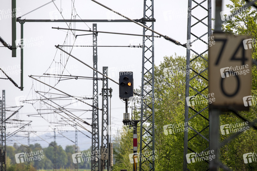 Fahrleitung, Fahrdraht, Signale, Stromabnehmer, Stromkreis, elektrische Energie, 15000 Volt, Elektrischer Schlag, Elektrizität, Bahnstromnetz, Lichtbogen, Gleichstrom, 1400 Ampere, Stromstärke, Quertragwerk, Rillenfahrdraht, Stromschienenoberleitung, Strommaste, Unterwerk, Erdung, Kurzschluss, Blitzschutz, Korrosion, Fahrleitungssysteme, Hauptstrecke, Nebenstrecke, Verkehrssektor, Verkehrsbranche, Fahrstromversorgung, Herausforderungen, Deutsche Bahn, DB, Bahnindustrie, Eisenbahnen, Güterwagen, Transportvolumina, Güterzüge, Versorgungssicherheit, Rail, Cargo, Europäischen Wirtschaft, Deutsche Wirtschaft, Warentransport, Logistiklösungen, Logistik, Logistik-Center, Waggon, Strecken, Schiene, Dienstleistungen, Transferverbindung, Symbolfoto, Symbolbild