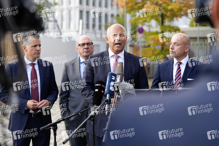Thorsten Frei, Alexander Throm, Roman Poseck und Alexander Hoffmann beim Pressestatement der CDU/CSU nach den Beratungen zwischen Ampel, Union und Ländern im Bundesinnenministerium. Berlin, 10.09.2024