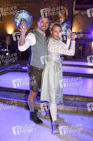 Ludwig Heer mit Freundin Giulia Siegel bei der 13. Angermaier Eisstock-WM in Tracht auf den Eisstockbahnen im Park Cafe. München, 16.01.2020