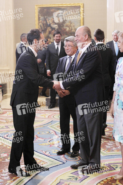 König Juan Carlos und Königin Sophia empfangen Spieler und Funktionäre von Atletio Madrid im Palacio de la Zarzuela, Madrid