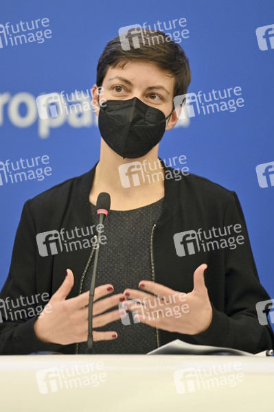 Ska Keller beim Grünen/EFA Briefing im Europäischen Parlament. Straßburg, 14.12.2021