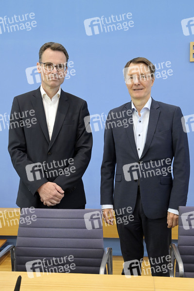 Stephan Baldus und Karl Lauterbach bei der Bundespressekonferenz Gesundes-Herz-Gesetz im Haus der Bundespressekonferenz. Berlin, 28.08.2024