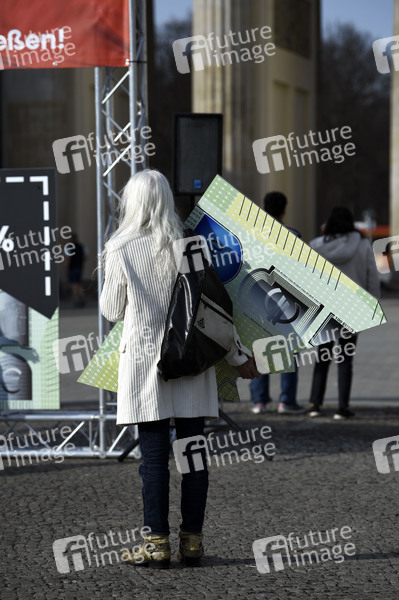 DGB Aktion zum Equal Pay Day betreffs der Ungleichheit in der Bezahlung zwischen Frauen und Männern am Brandenburger Tor. Berlin, 07.03.2025