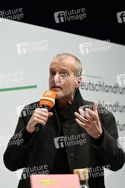Robert Seethaler beim Gespräch zum Buch 'Trotteln' am Messestand von Deutschlandfunk / Deutschlandradio in Halle 2 auf der Leipziger Buchmesse 2025 auf dem Messegelände. Leipzig, 28.03.2025