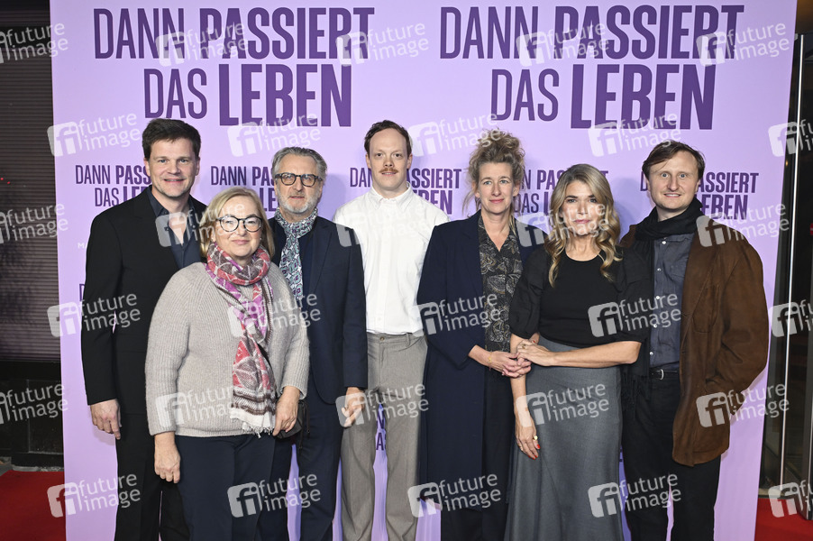 Benjamin Herrmann, Dorothee Erpenstein, Robert Marciniak, Lukas Rüppel, Neele Leana Vollmar, Anke Engelke und Michael Kranz bei der Premiere des Kinofilms 'Dann passiert das Leben' im Rio Filmpalast. München, 28.10.2025