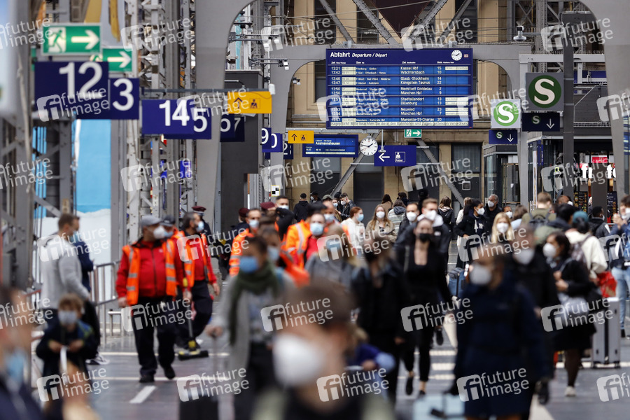 Die Deutsche Bahn hat Fahrpreiserhöhungen angekündigt. Zusätzlich will der Konzern den beliebten Gepäckservice für die Bahncard 100 komplett ersatzlos streichen. Im Bild Passagiere mit Gepäck am Frankfurter Hauptbahnhof. (Themenbild, Symbolbild) Frankfurt, 15.10.2021