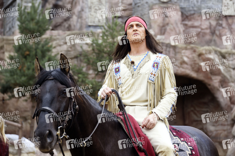 Schauspieler, Sänger, Prominenz, Fototermin, Fotoprobe, Pressetermin, Photocall, Fotocall, Unterhaltung, Entertainment, Kultur, Western, Freilichtbühne, Freilichttheater, Freilufttheater, Kalkbergstadion, Open Air Theater, 68. Karl-May-Spiele 2019, Tier, Pferd