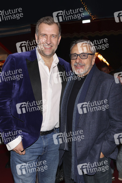 Rene Kindermann und Wolfgang Stumph bei der Premiere des 28. Dresdner Weihnachts-Circus an der Washingtonstraße. Dresden, 12.12.2025