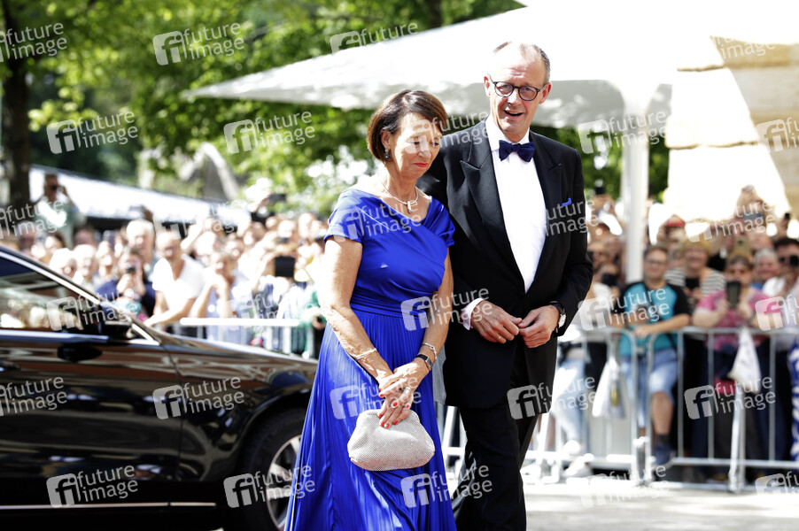 Friedrich Merz mit Ehefrau Charlotte Merz bei der Eröffnung der 113. Richard-Wagner-Festspiele 2025 mit der Neuinszenierung von 'Die Meistersinger von Nürnberg' im Bayreuther Festspielhaus. Bayreuth, 25.07.2025