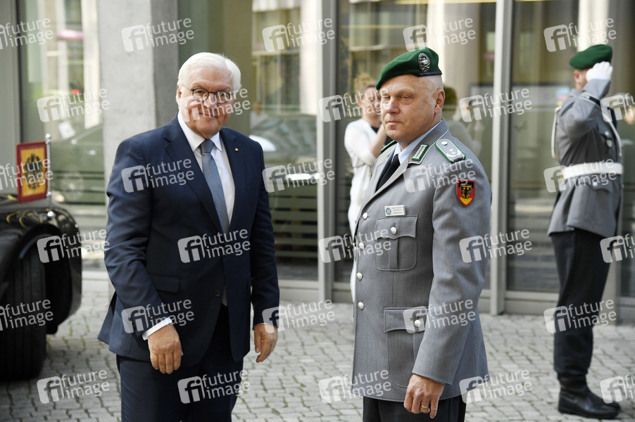 Frank-Walter Steinmeier und Oberstleutnant Michael Krause beim Besuch des Bundespräsidenten im Veteranenbüro der Bundeswehr in der Jean-Monnet-Straße anlässlich des Ersten nationalen Veteranentages. Berlin, 03.06.2025