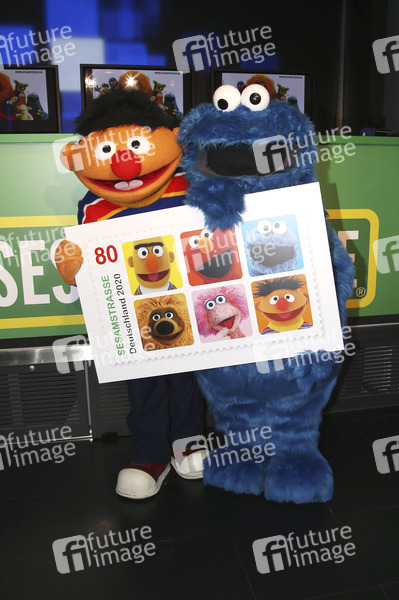 Ernie und Krümelmonster bei der Präsentation der Deutsche Post Sonderbriefmarke 'Sesamstrasse' beim NDR am Rothenbaum. Hamburg, 02.03.2020