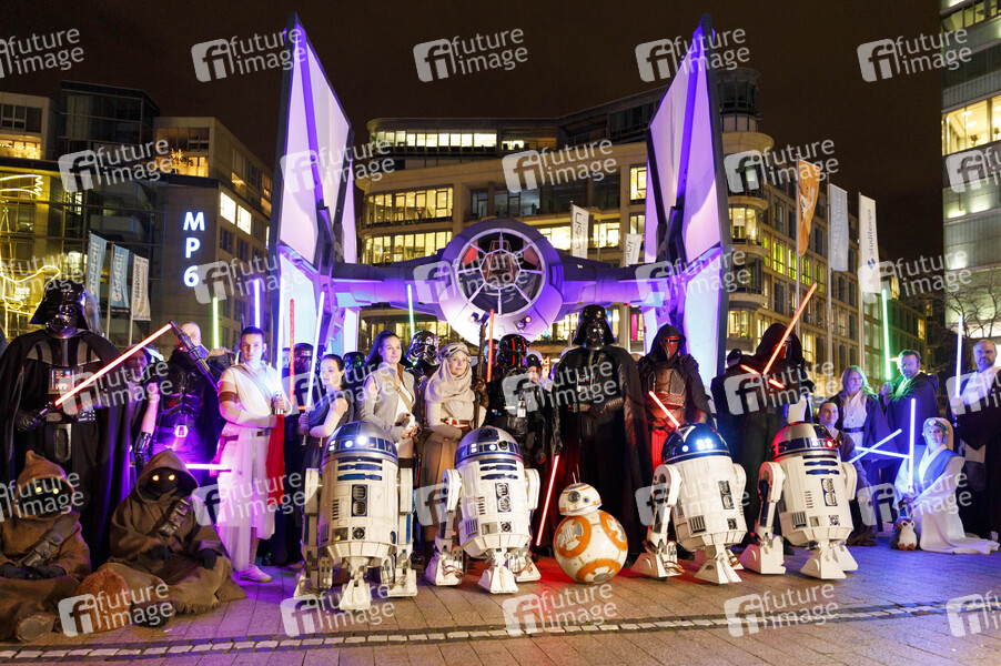 Star Wars Cosplayer vor TIE Fighter beim Gala-Screening des Kinofilms 'Star Wars: Episode IX - Der Aufstieg Skywalkers / Star Wars: Episode IX - The Rise of Skywalker' im Cinedom. Köln, 17.12.2019