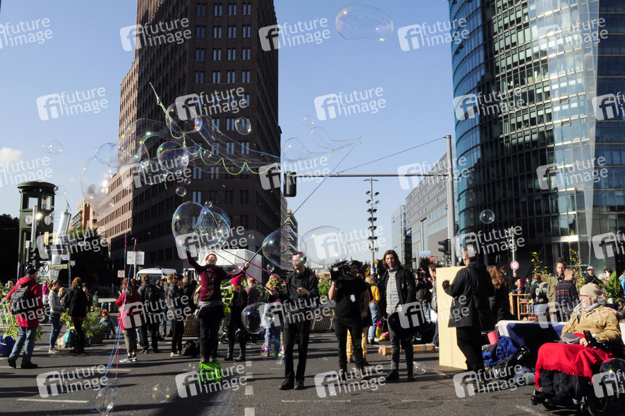 Aktivisten der Klimabewegung 'Extinction Rebellion' blockieren den Potsdamer Platz. Berlin, 07.10.2019