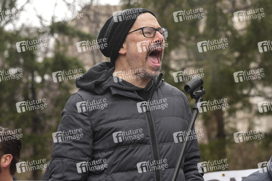 Über 300 Stadtarbeiter und andere protestieren mit einem Marsch über die Brooklyn Bridge, gegen die Ankündigung der Stadt, dass kommunale Angestellte ohne Covid-19-Impfung bis zum Ende der Woche entlassen würden. New York, 07.02.2022