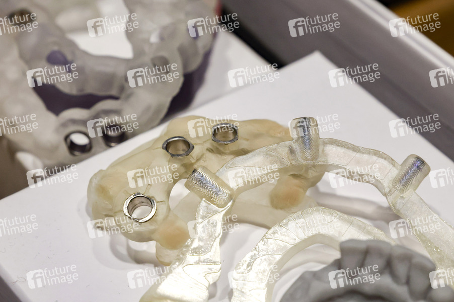 Geprintete Bohrschablone zur Implantatsetzung auf der IDS - Internationale Dental-Show in der Koelnmesse. Köln, 27.03.2025