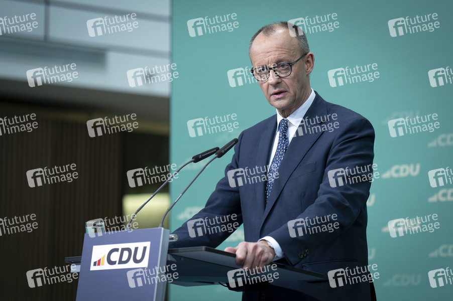 Friedrich Merz bei der Pressekonferenz nach der Sitzung des CDU-Vorstands im Konrad-Adenauer-Haus. Berlin, 24.02.2025