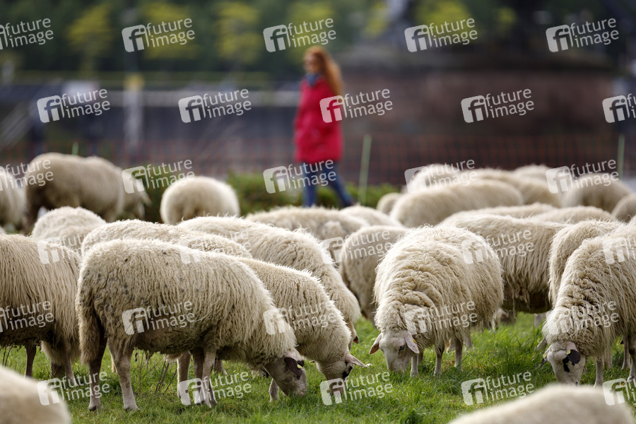 Als Herdenimmunität bezeichnet in der Epidemiologie eine indirekte Form des Schutzes vor einer ansteckenden Krankheit wie Covid-19, wenn ein hoher Prozentsatz einer Population schon immun geworden ist - im Bild eine Schafherde auf den Poller Wiesen. Köln, 01.05.2020