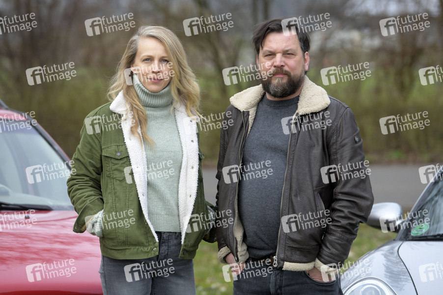 Petra Schmidt-Schaller und Sascha Gersak beim Fototermin am Set der ARD-Serie 'Finsteres Herz - Die Toten von Marnow 2' (AT) am Hornweg. Kleinburgwedel, 06.03.2024