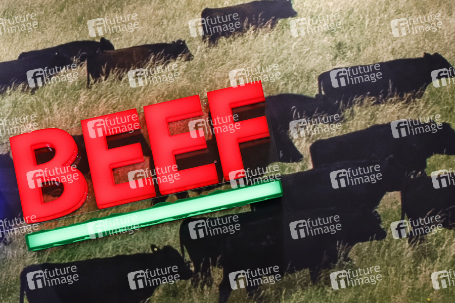 Fleischprodukte, Beef, Meat, Fleisch, Fleischbranche, Wurst, Schinken, Rinderfleisch, Rindfleisch, Delikatessen, Fleischkonsum, Fleisch essen, Anuga, Food, Ernährung, Essen, Trinken, Nahrung, Nahrungsmittel, Food-Messe, Lebensmittel-Messe, Lebensmittelmesse, FoodTech, Fachmesse, Innovationen, Nachhaltigkeit, pflanzliche Lebensmittel, Food-Trends, Laborfleisch, Flexitarismus, Tierwohl, neue Produkte, Anuga-Logo, Fahnen, Anuga-Fahnen, Symbolfoto, Symbolbild