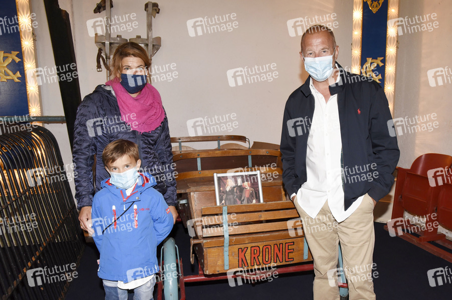 Heino Ferch mit Ehefrau Marie-Jeanette und Sohn Gustav Theo Cian beim Presserundgang auf der Circus Krone-Farm. Weßling, 29.06.2020