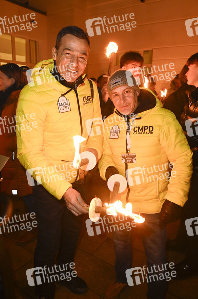 Erol Sander und Erdogan Atalay beim Opening der Baltic Lights 2025 mit Fackellauf an der Seebrücke Heringsdorf. Heringsdorf, 28.02.2025