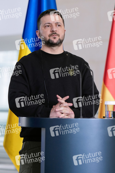 Wolodymyr Selenskyj beim Empfang des Präsidenten der Ukraine zu einem gemeinsamen Gespräch mit dem Bundeskanzler und anschließendem Pressestatement im Bundeskanzleramt. Berlin, 16.02.2024
