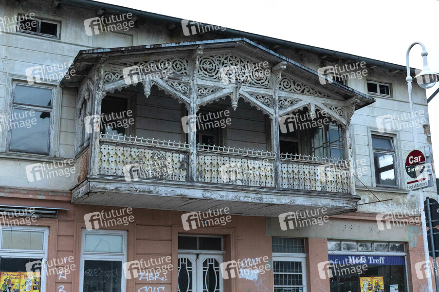 Balkon im Bäderstil - Sightseeing in Sassnitz auf der Halbinsel Jasmund im Nordosten der Insel Rügen. Sassnitz, 08.10.2024