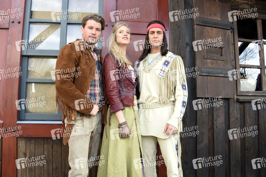 Raul Richter, Larissa Marolt und Alexander Klaws beim Pressetermin zur Vorstellung des neuen Winnetou und der Gaststars der Karl-May-Spiele 2019 im Indian Village. Bad Segeberg, 08.03.2019