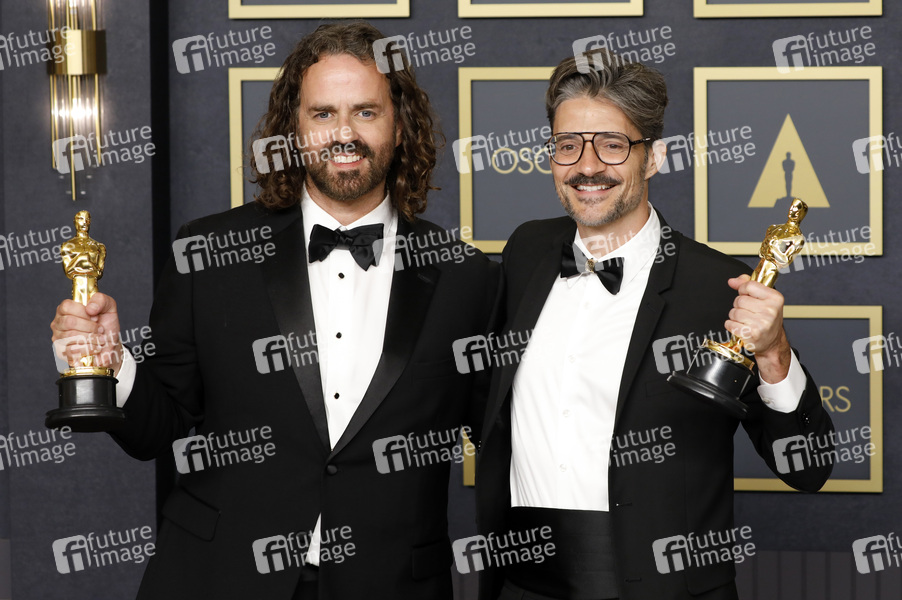 Alberto Mielgo und Leo Sanchez mit Oscars für den besten animierten Kurzfilm 'The Windshield Wiper' im Press Room der Oscar Verleihung 2022 / 94th Annual Academy Awards im Hollywood & Highland Center. Los Angeles, 27.03.2022