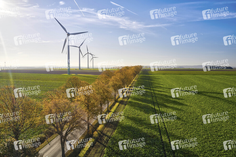 Herbstimpression, goldener Oktober, Wetter, Sonne, sonnig, bunt, Herbstblätter, buntes Herbstlaub, Blätter, goldener Herbst, Herbst, Herbstfarben, Herbstlaub, herbstlich, Herbstsonne, Herbstspaziergang, Herbststimmung, Herbsttag, Herbstwetter, herstblich, Laub, Luftaufnahme, Windräder, Windrad, sauberer Strom, Energiewende, Windenergie, Luftbild, Drohne, Drohnenaufnahme, Symbolbild, Symbolfoto