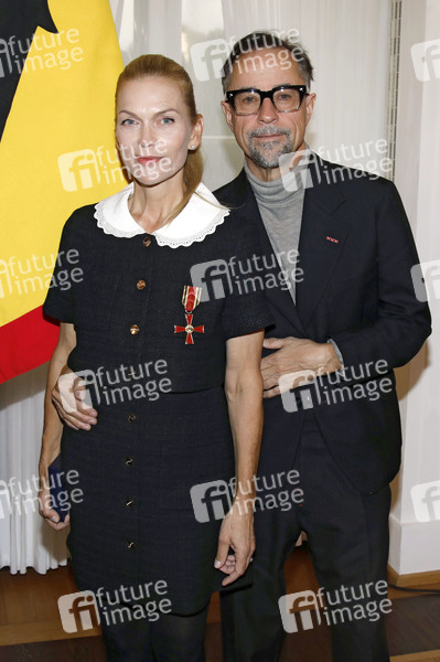 Anna Loos und Jan Josef Liefers bei der Verleihung des Verdienstkreuzes am Bande der Bundesrepublik Deutschland an Anna Loos im Schloss Bellevue. Berlin, 01.10.2025