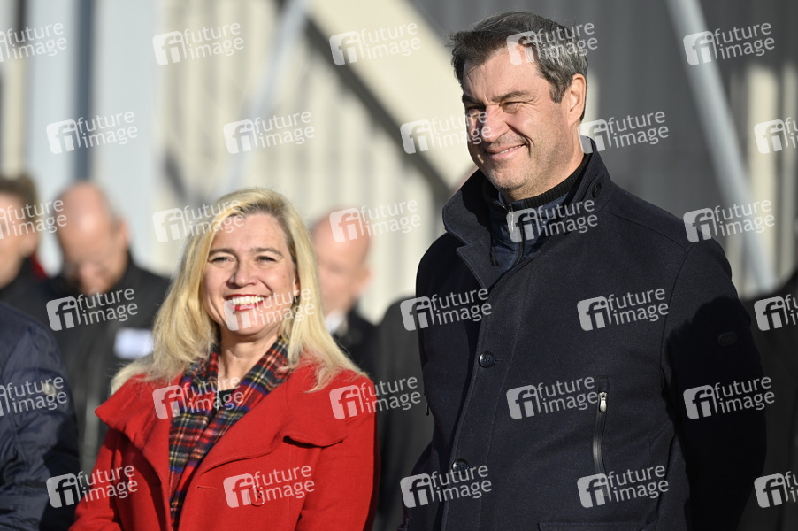 Melanie Huml, Markus Söder bei der Jubiläumsveranstaltung '30 Jahre Main-Donau-Kanal' am Bamberger Hafen. Bamberg, 25.11.2022