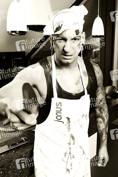 SOLsnap Cover-Model März 2012, Küche, Koch, Chef de Cuisine, Messer, Tattoo, Tätowierung
