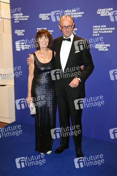 Friedrich Merz mit Ehefrau Charlotte Merz bei der 23. Verleihung des Preises für Verständigung und Toleranz 2024 im Glashof des Jüdischen Museums. Berlin, 16.11.2024