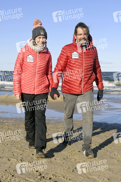 Jessica Ginkel mit Ehemann Daniel Fehlow beim Baltic Lights 2023 Charity-Hunderennen zu Gunsten der Welthungerhilfe zwischen der Seebrücke Ahlbeck und der Seebrücke Heringsdorf. Heringsdorf, 04.03.2023