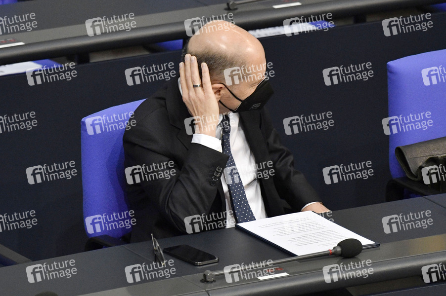 Olaf Scholz in der 225. Sitzung des Deutschen Bundestages im Reichstagsgebäude. Berlin, 23.04.2021
