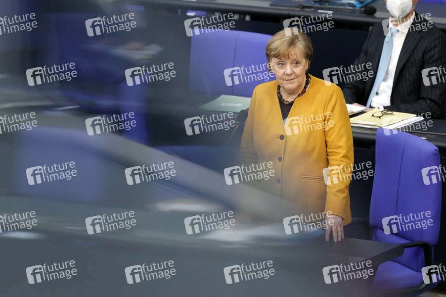 Angela Merkel in der 217. Sitzung des Deutschen Bundestages im Reichstagsgebäude. Berlin, 24.03.2021