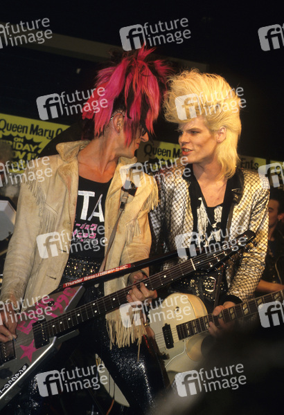 Tony James und Neal X von Sigue Sigue Sputnik live in den Abbey Road Studios. London, 29.11.1985