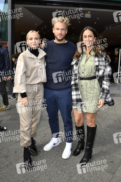 Janin Ullmann, Frederic Heidorn und Melissa Khalaj bei der Wiedereröffnung des neuen Globetrotter in der Schloßstraße. Berlin, 01.10.2020