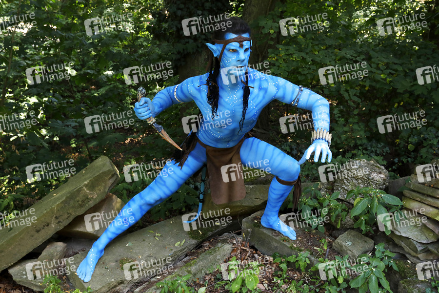 GEEK ART - Bodypainting meets SciFi, Fantasy and more: 'Avatar' Photoshooting mit Torben Behning als Jake Sully Avatar im Czarnecki-Garten. Hameln, 04.08.2019 - Ein Projekt des Fotografen Tschiponnique Skupin und des Bodypainters und Transformakers Enrico Lein
