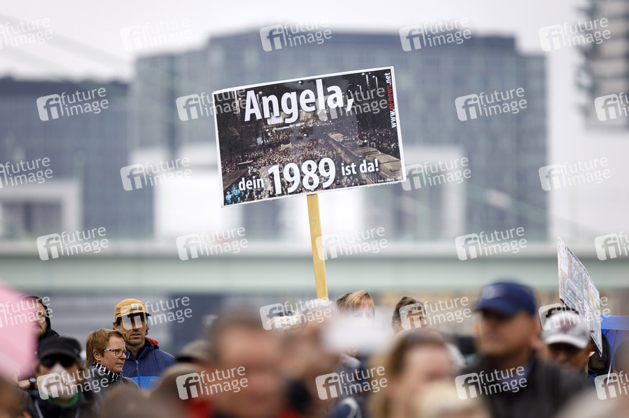 Protestplakat auf der Querdenken-Demo von Querdenken 711 in der Deutzer Werft. (Themenbild) Köln, 26.09.2020