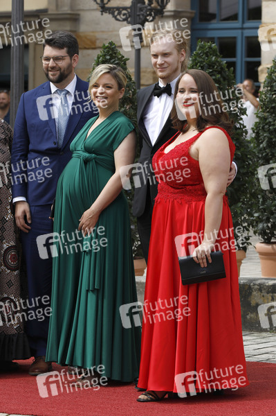 Johannes Becher, Katharina Schulze, Florian Wilsch und Ricarda Lang bei der Eröffnung der 112. Richard-Wagner-Festspiele 2024 mit der Neuinszenierung von 'Tristan und Isolde' im Bayreuther Festspielhaus. Bayreuth, 25.07.2024